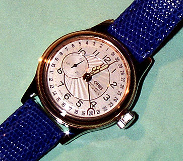 oris2.jpgはボーイズサイズといいます。oris1.jpgの標準サイズを比較してみてください。oris1のほうがケースは大きいのですがムーブメントは逆に小さいのです、たぶんレディースと兼ねるためだと思われます。こちらのほうがハイビートです。それから、ORISの特筆すべき点のひとつに皮ベルトのクオリティがあります(写真は非オリジナルですが)。本物はじつに良いベルトですよ、ちゃんとワシントン条約も守ってますし。