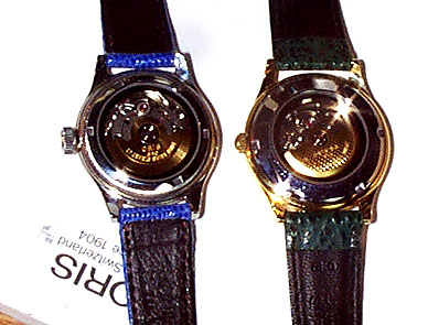 メモ: 両方とも裏蓋がスケルトンになっています。ORISはこういった仕様がマニア受けするということを良く知っているメーカーです。私はそれにまんまとハマって2本所有することになってしまいました(はははは....)。どちらも耐震構造。最近は某OIOIだけのスペシャルモデルが存在します。